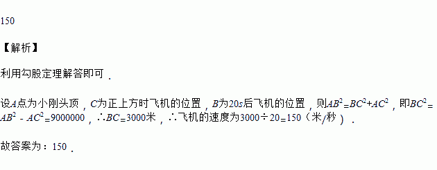 如图,飞机在空中水平飞行,某一时刻刚好飞到小明头顶正上方4 000米处,经过了20秒,飞机距离小明头顶5 000米,则飞机飞行的速度是________米/秒.