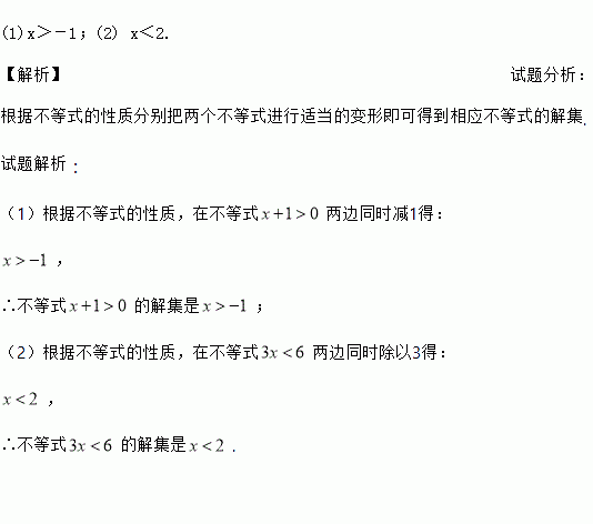 (1)x+1>0; (2)3x<6.