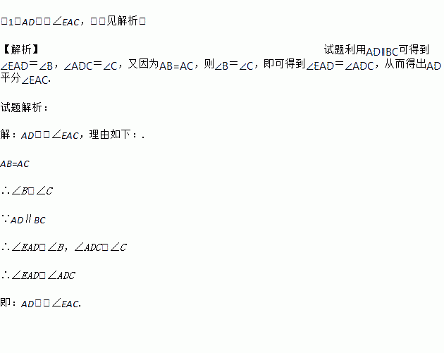 如图,已知AB=AC.若,则AD平分∠EAC吗?请说明理由.
