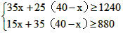 现计划把甲种货物1240吨和乙种货物880吨用一列货车运往某地,已知这列货车挂有A、B两种不同规格的货车厢共40节,使用A型车厢每节费用为6000元,使用B型车厢每节费用为8000元。