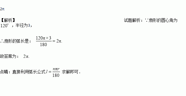 扇形的圆心角为120°,半径为3,则扇形的弧长为_______.