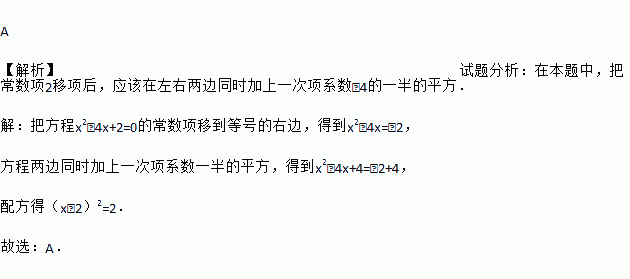用配方法解方程:x2﹣4x+2=0,下列配方正确的是( )