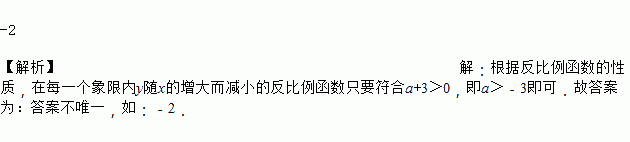 如果反比例函数y=(a为常数)的图象,在每一个象限内,y随x的增大而减小,写出一个符合条件的a的值为_____.