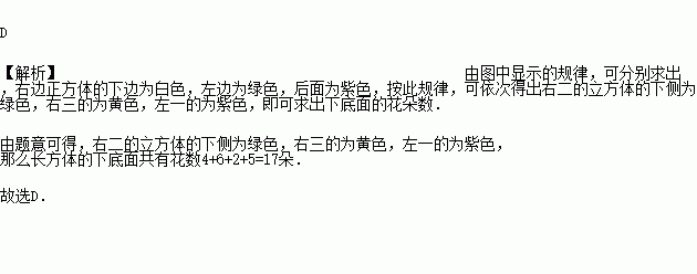 一个水平放置的长方体,如图所示,那么长方体的的下底面共有( )朵花。