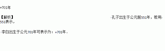 孔子出生于公元前551年,如果用-551年表示,则李白出生于公元701年表示为________。
