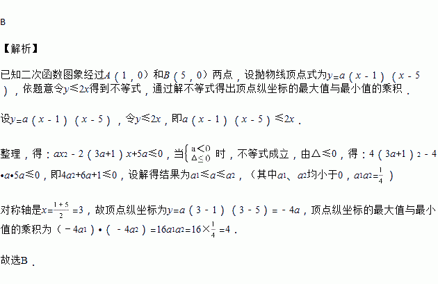 二次函数的图象通过和两点,但不通过直线上方的点,则其顶点纵坐标的最大值与最小值的乘积为( )