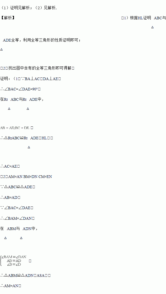 (2)图中还有哪些相等的线段(至少写出三组),选其中的一组进行证明。