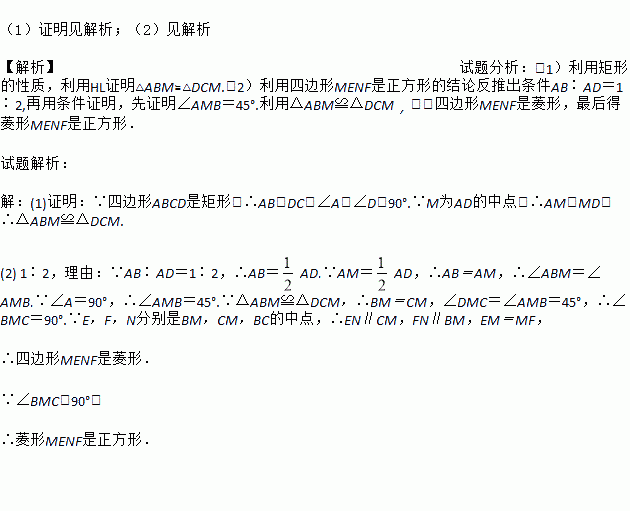 (2)当AB∶AD=___时,四边形MENF是正方形,并说明理由.