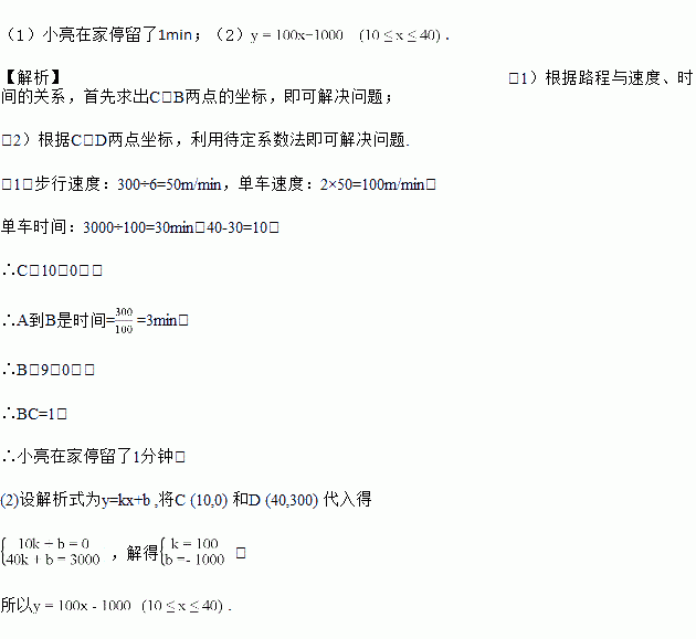 (2)求小亮骑车从家出发去图书馆时距家的路程 y(m)与出发时间 x(min)之间的函数解析式.