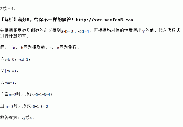 已知a、b互为相反数,c、d互为倒数,|m|=3,求的值.
