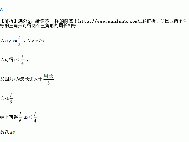 长为l的一根绳,恰好可围成两个全等三角形,则其中一个三角形的最长边x的取值范围为( )