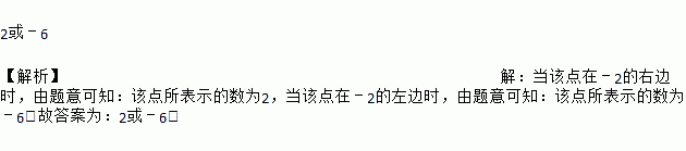 2或﹣6 【解析】【解析】 当该点在﹣2的右边时,由题意可知:该点所表示的数为2,当该点在﹣2的左边时,由题意可知:该点所表示的数为﹣6.故答案为:2或﹣6.