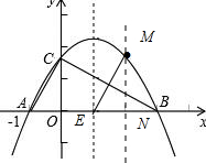 ∴点C与点M关于抛物线的对称轴$x=\frac{3+(-1)}{2}=1$对称.