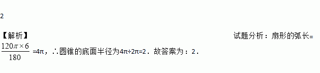 用一个圆心角为120°,半径为6的扇形作一个圆锥的侧面,这个圆锥的底面半径是 .
