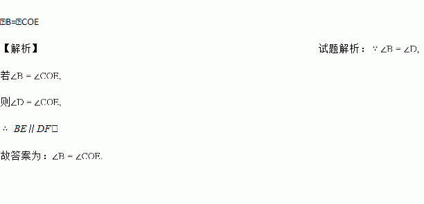 如图,已知∠B=∠D,要使BE∥DF,还需补充一个条件,你认为这个条件应该是_____.(填一个条件即可)