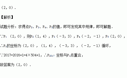 在平面直角坐标系中,点经过某种变换后得到点,我们把点叫做点的终结点.已知点的终结点为,点的终结点为,点的终结点为,这样依次得到,若点的坐标为,则点P2017的坐标为 .