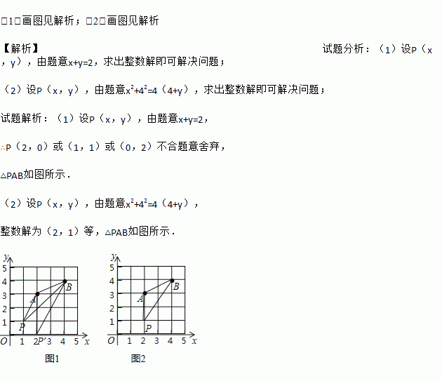 (2)在图2中画△PAB,使点P,B横坐标的平方和等于它们纵坐标和的4倍.