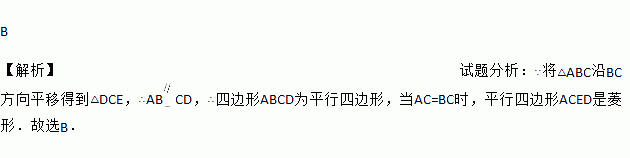 如图,将△ABC沿BC方向平移得到△DCE,连接AD,下列条件能够判定四边形ACED为菱形的是( )