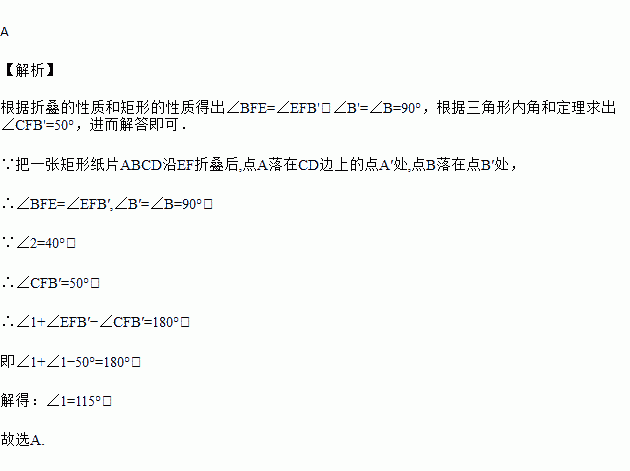 如图,把一张矩形纸片ABCD沿EF折叠后,点A落在CD边上的点处,点B落在点处,若,则图中的度数为