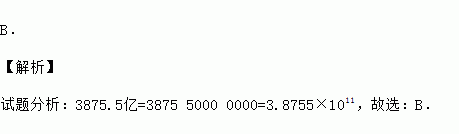 据统计,2013年河南省旅游业总收入达到约3875.5亿元.若将3875.5亿用科学记数法表示为3.8755×10n,则n等于( )