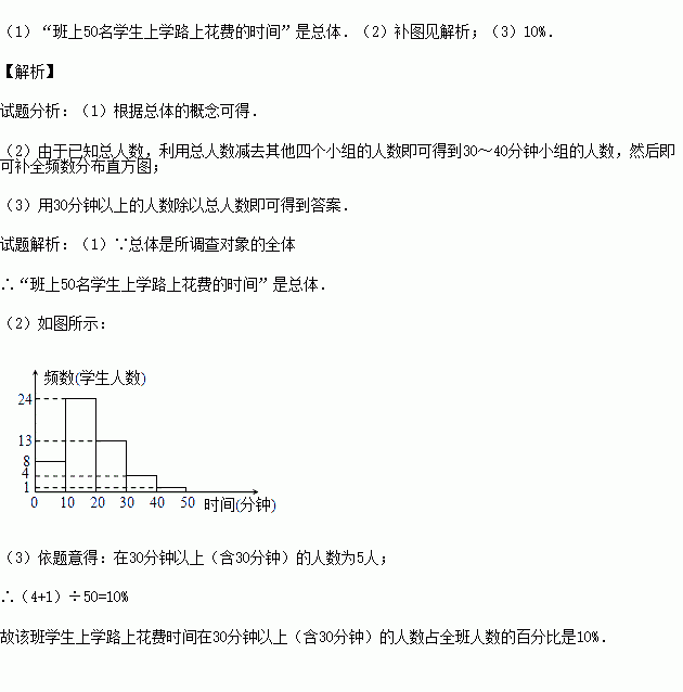 £¨3£©¸Ã°àѧÉúÉÏѧ·ÉÏ»¨·Ñʱ¼äÔÚ30·ÖÖÓÒÔÉÏ£¨º¬30·ÖÖÓ£©µÄÈËÊýռȫ°àÈËÊýµÄ°Ù·Ö±ÈÊǶàÉÙ£¿