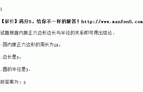 已知⊙O的内接正六边形的周长为18 cm,则这个圆的半径是________cm.