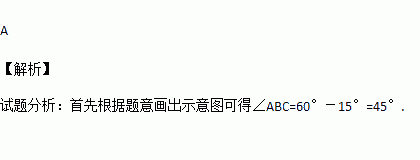某人从A点出发沿北偏东60°方向走到B点,再从B点向南偏西15°方向走到C点,则∠ABC等于( )