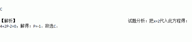 一元二次方程x2+px-2=0的一个根为2,则p的值为( )