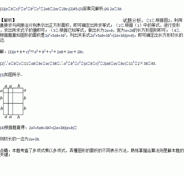 已知a+b+c=11,ab+bc+ac=38,求a2+b2+c2的值;