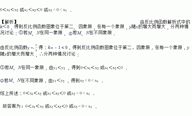 已知点、在反比例函数的图像上,若,则与应满足的条件是__________.