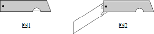 如图 1 是我们常用的折叠式小刀,图 2 中刀柄外形是一个矩形挖去一个小半圆,其中刀片的两条边缘线可看成两条平行的线段,转动刀片时会形成如图 2 所示的∠1 与∠2 ,则∠1 与∠2 的度数和是______度.