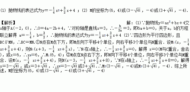 (2)经过B,C的直线l平移后与抛物线交于点M,与x轴交于点N,当以B,C,M,N为顶点的四边形是平行四边形时,求出点M的坐标.