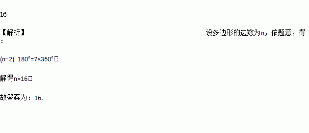 一个多边形的内角和等于它外角和的7倍,则这个多边形的边数为_________.