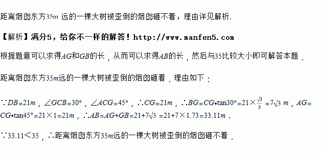 远的一棵大树是否被歪倒的烟囱砸着?请说明理由.![]()