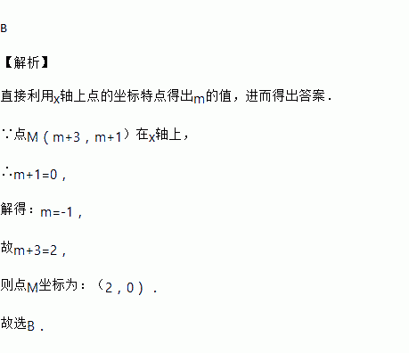 点M(m+3,m+1)在x轴上,则点M坐标为( )
