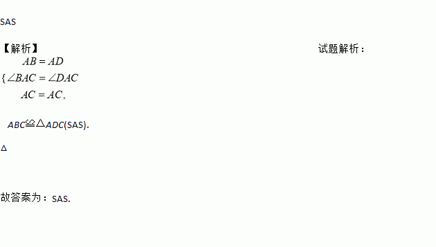 如图,若AB=AD,∠BAC=∠DAC,则△ABC≌△ADC,全等的依据是_________;