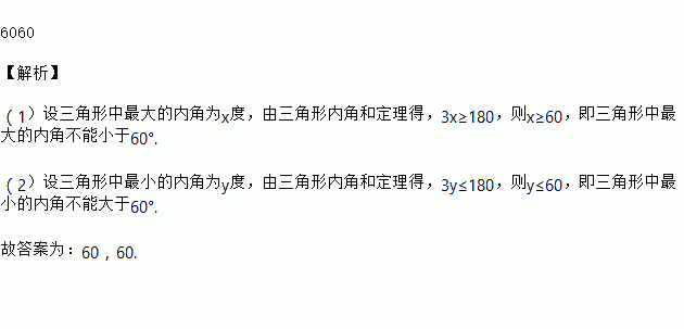 三角形中最大的内角不能小于_______度,最小的内角不能大于______度.