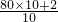 分析:观察各数,可发现它们都接近80,可以80为标准,超过的记正数,不足的记负数,把这些数相加,再加上80×10,最后除以10即可.