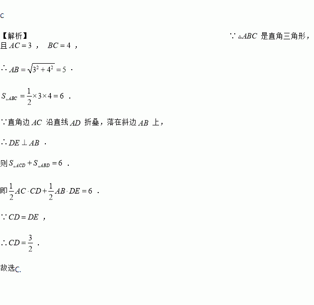 如图,将纸片的直角边沿直线折叠,使它落在斜边上,且与重合,若, ,则的长为( ).