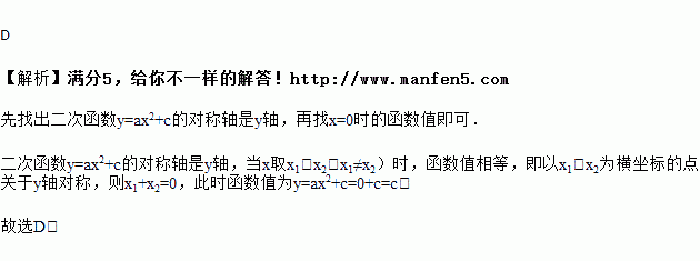 若二次函数的图象上有两点,,且,则当取时,函数值为( )