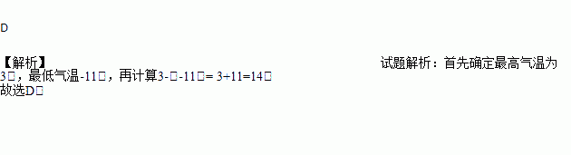 冬季某天我国三个城市的最高气温分别是-11℃,3℃,-3℃,它们任意两城市中最大的温差是( )