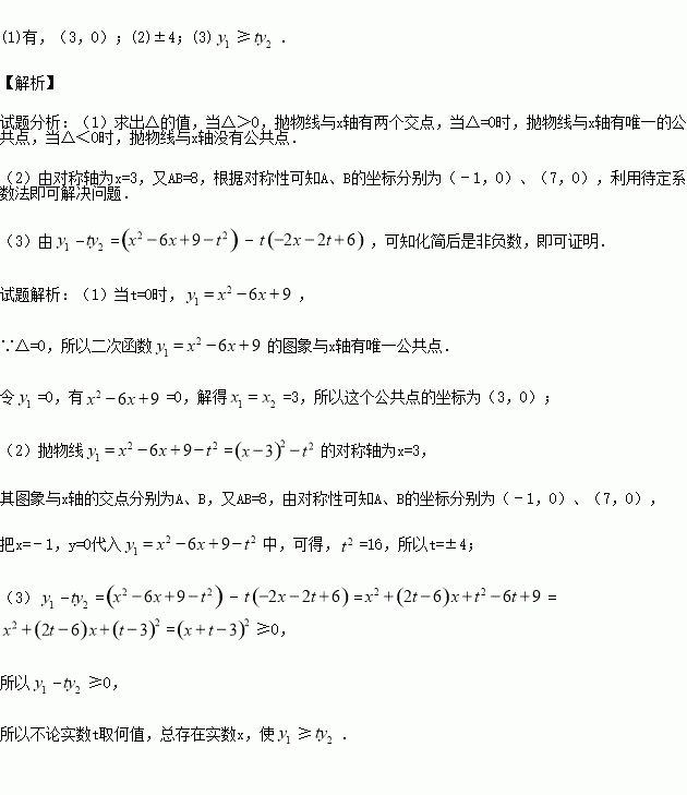 (3)求证:不论实数t取何值,总存在实数x,使