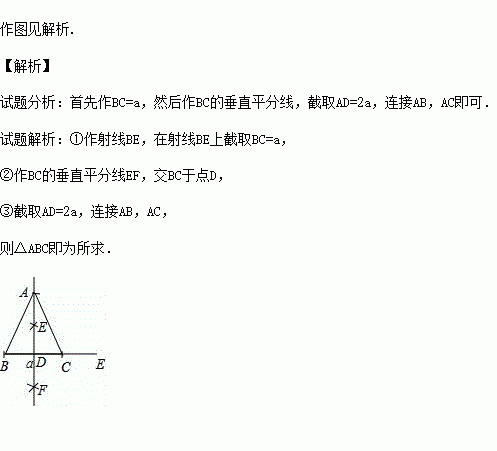 已知:如图,线段a,求作:△ABC,使AB=AC,BC=a,且BC边上的高AD=2a.