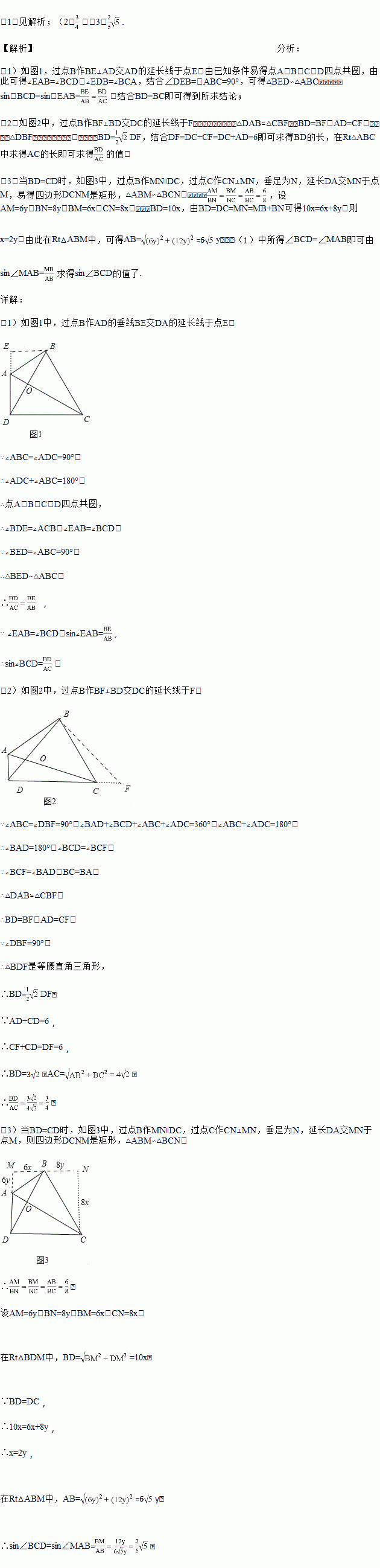 (3)若BD=CD,AB=6,BC=8,求sin∠BCD的值.