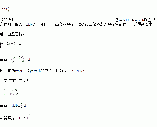 已知直线y=2x+1和y=3x+b的交点在第二象限,则b的取值范围是______.
