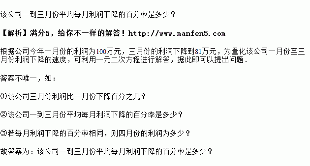 万元,为量化该公司一月份至三月份利润下降的速度,请你提出一个数字问题为________.![]()