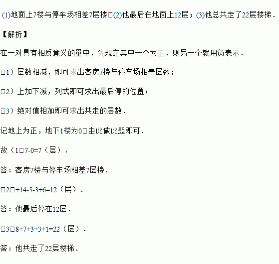 (2)某会议接待员把汽车停在停车场,进入该层电梯,先向上走14层,又向下走5层,再向下走3层,最后向上走6层,你知道他最后在哪里吗?