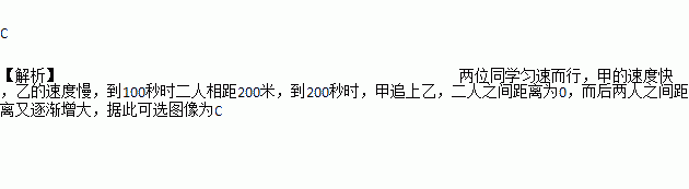 甲、乙两同学同时从400m环形跑道上的同一点出发,同向而行,甲的速度为6m/s,乙的速度为4m/s,设经过x(单位:s)后,跑道上两人的距离(较短部分)为y(单位:m),则y与x(0≤x≤300)之间的函数关系可用图象表示为( )
