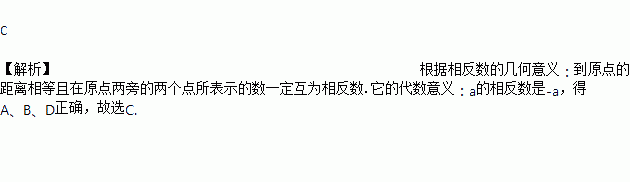 A. 到原点的距离相等且在原点两旁的两个点所表示的数一定互为相反数