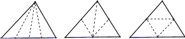 将下面的三角形分成面积相等的4个三角形,至少画出两种不同的画法.